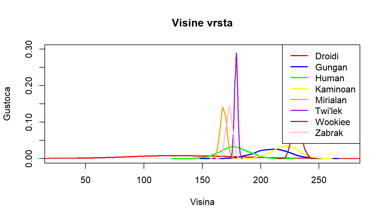 Svi su podaci uspješno zamijenjeni i ta varijabla više ne sadrži NA. Kad bi u pitanju bilo više vrijednosti, onda bi bilo praktičnije prvo kreirati vektor koji mapira imena likova na njihove vrste. Potom bi se koristila petlja for ili vektorizirana funkcija za pregled redova u podatkovnom okviru i zamijenile NA vrijednosti odgovarajućim vrstama: